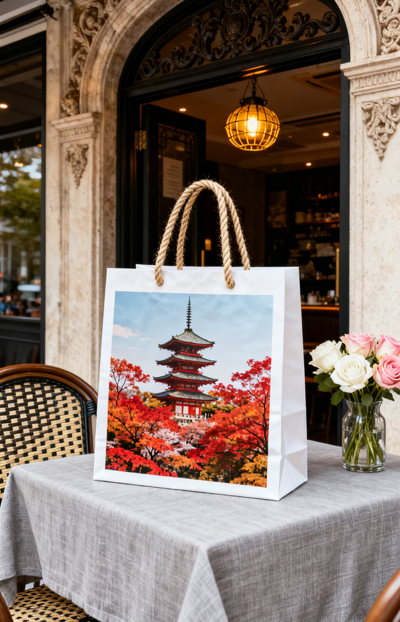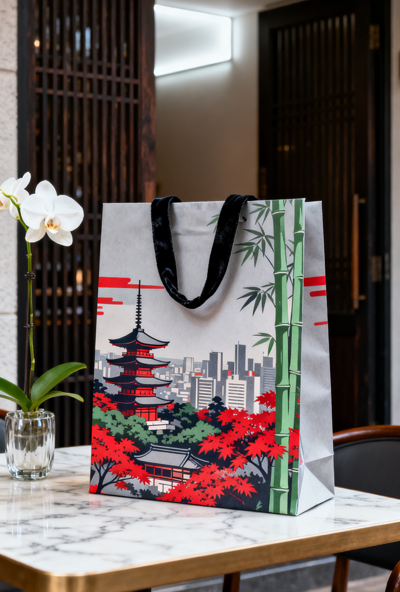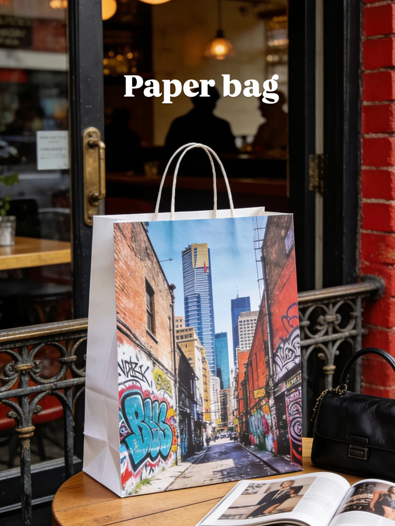 Name: paper bag Material: kraft paper print pattern Quantity: MOQ 500 piece. Sample time: Around 10 days. Production time: Aroudn 20 days. Trade terms: EXW、FOB、DDU、DDP to choose. Mode of shipping: air freight or sea freight to choose. Global shipping *** Produce according to customers design and pattern ***